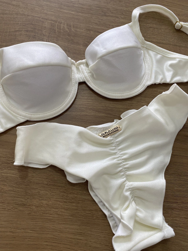 Tecido liso Gloss com leve brilho trazendo sofisticação para o conjunto.