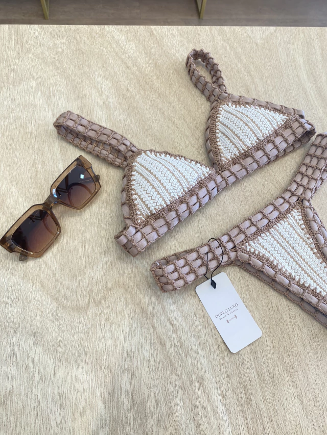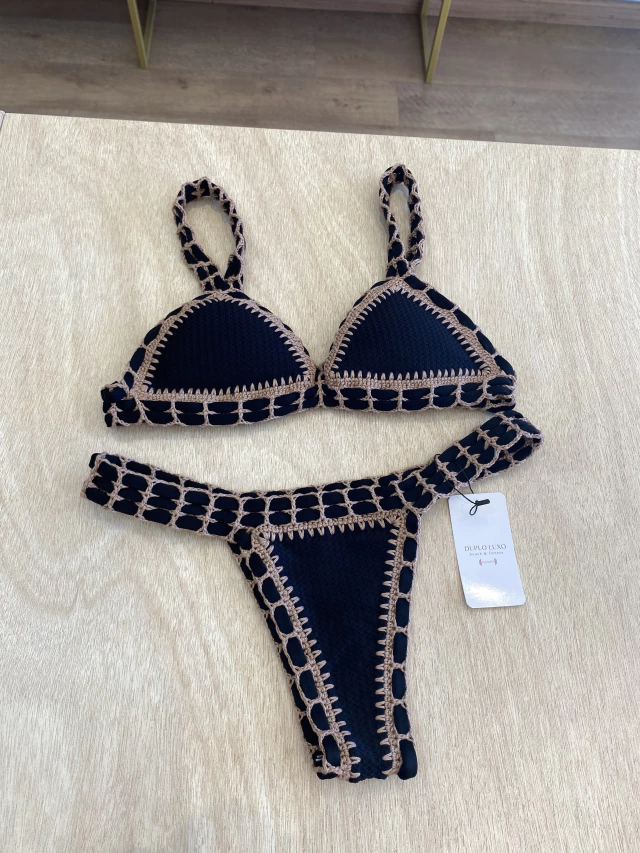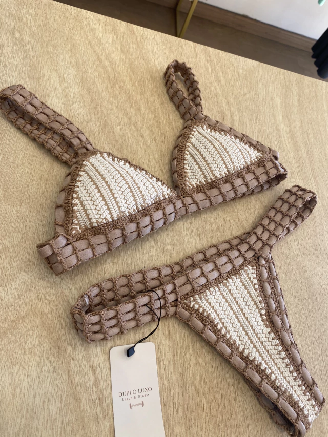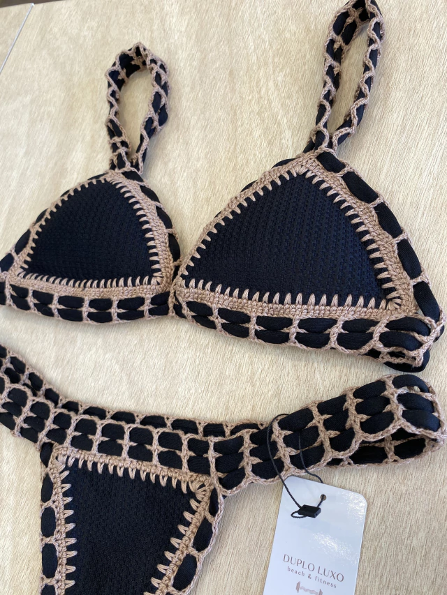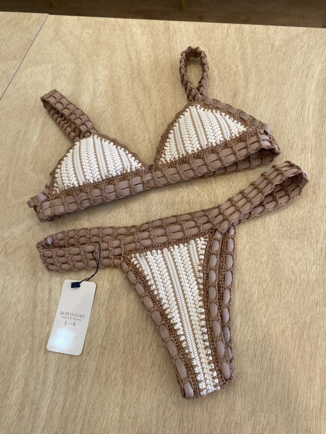 Biquíni Crochê: sofisticação e conforto em um só produto. Este conjunto apresenta um top cortininha dupla face com bojo macio e maleável, garantindo ajuste perfeito e elegância à sua silhueta. A calcinha dupla face é delicadamente adornada com trabalho manual em crochê, conferindo um toque artesanal e exclusivo. Ideal para quem busca estilo e exclusividade com qualidade impecável.