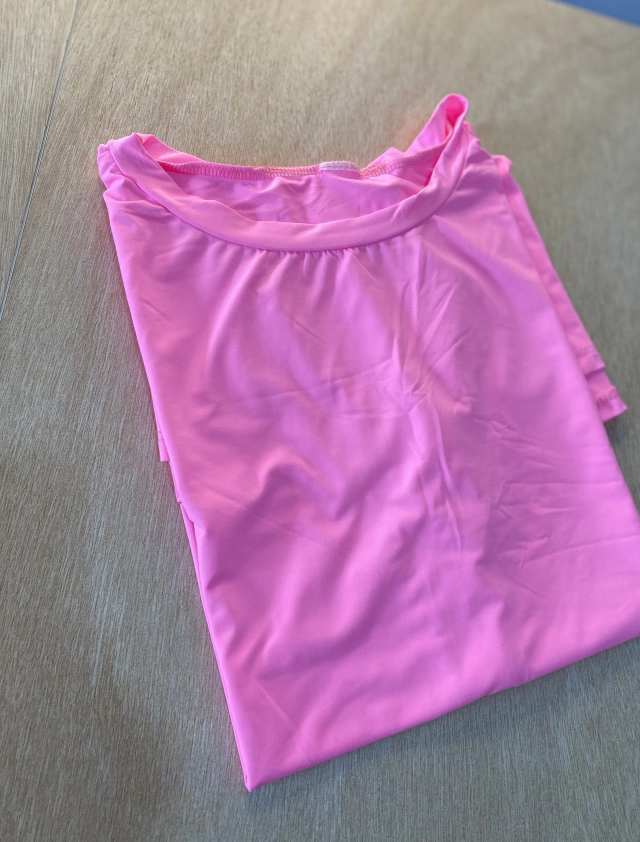 Confortável e gostosa no corpo, essa camiseta cobre o bumbum, proporcionando segurança e confiança a cada passo. As mangas mais curtas garantem ventilação, mantendo você fresca mesmo nos dias mais quentes. Com um toque gelado, essa peça não amassa facilmente, tornando-a perfeita para o uso diário.